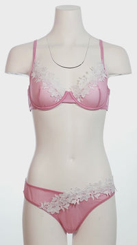 Unlined underwire mesh bra set with embroidered trim details. Robe sold separately.